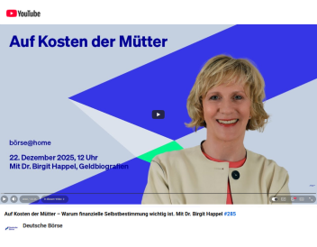 Bei der Deutschen Börse hatte ich die Gelegenheit, meine Perspektiven zur finanziellen Gleichstellung von Müttern zu teilen. Wer einen kurzweiligen Einblick unseres Austauschs über Care-Arbeit und Vermögensaufbau bekommen möchte, kann das You-Tube Video hier anschauen.