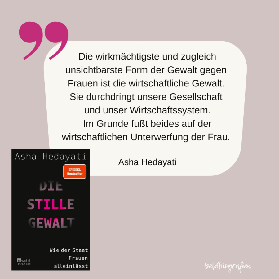 Die Familienrechtsanwältin Asha Hedayati vertritt schwerpunktmäßig gewaltbetroffene Frauen in Trennungs-, Scheidungs- und Gewaltschutzverfahren und hat mit Die stille Gewalt ein empfehlenswertes Buch zur häuslichen und strukturellen Gewalt vorgelegt.